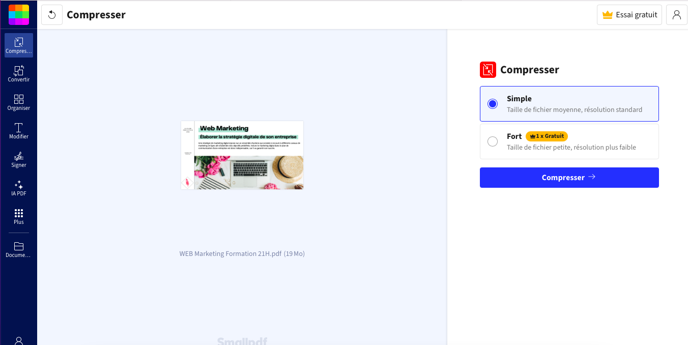 Étape 4 : lancer la compression du PDF